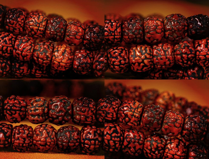 金刚的纹路分“浅纹”“中纹”“深纹”三类,最典型的即是“柴纹”和“爆肉纹”。柴纹的纹路浅,名义平整,手上的汗液和油脂阻遏易卡进破绽,盘玩时汗液能均匀渗入到金刚里面,缓缓养出红润感;而爆肉纹(尤其是那种“坑连坑”的梅斑纹、蜂窝纹),纹路深且复杂,每颗珠子名义可能有几十个小凹槽,手上的脏东西全钻进去了,你用钢丝刷能刷掉名义的,刷不到深处的,时刻一长,那些黑泥氧化后就成了“强劲污渍”。