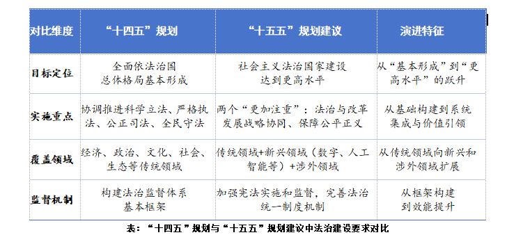“十四五”和“十五五”权衡建议中的法治成立条件既体现了全始全终的内在逻辑,又反馈了不同发展阶段的计谋侧重。通过对比两者异同,不错明晰把捏中国法治成立的演进轨迹和发展标的。